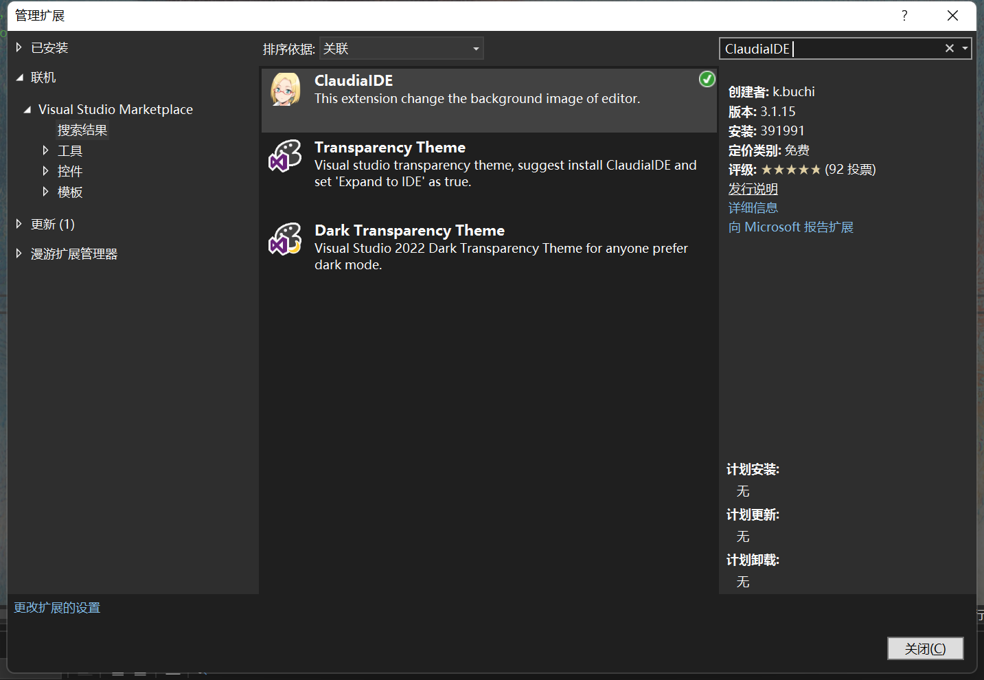 在扩展中点击管理扩展,在联机中搜索ClaudiaIDE