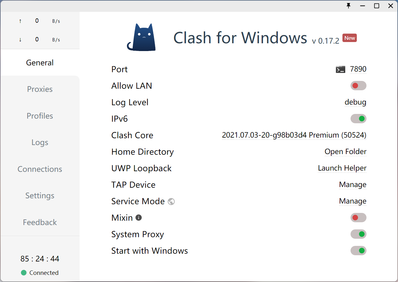 Clash for Windows 是目前在 Windows 上好用的的图形化分支。通过 Clash API 来配置和控制 Clash 核心程序,降低了 Clash 的使用成本,小白也能轻松入门使用。